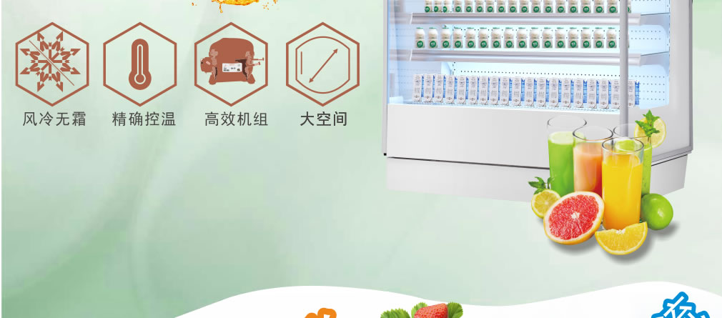① 風(fēng)扇或空調(diào)出風(fēng)口不能正對(duì)敞口式冷柜吹風(fēng);