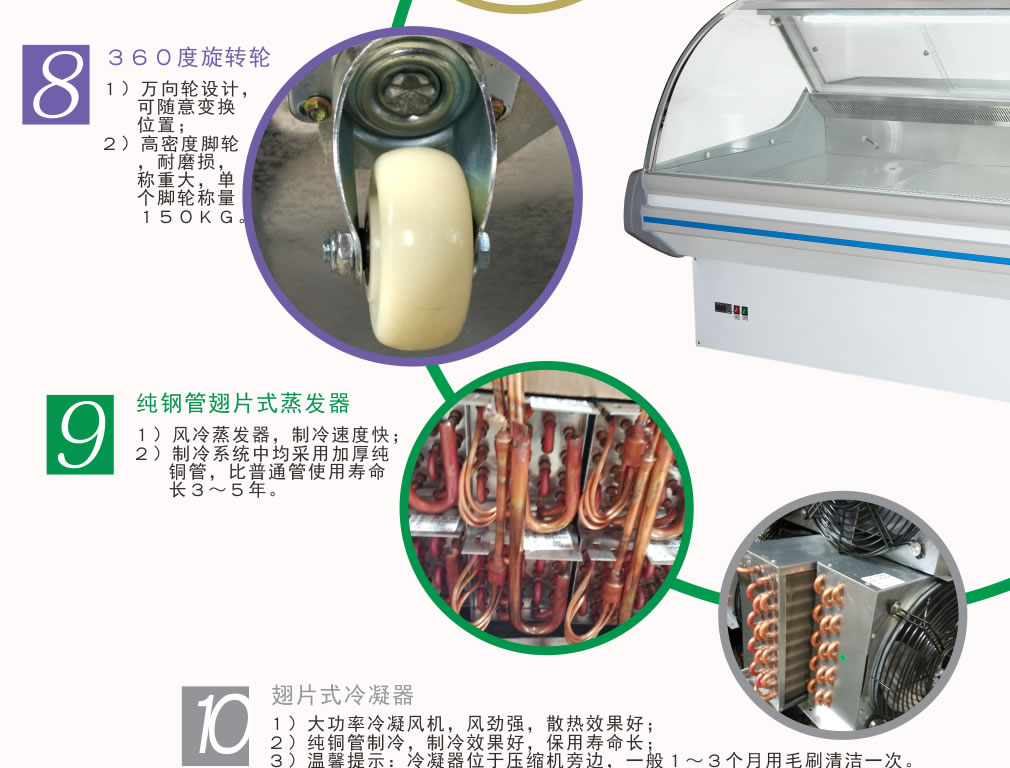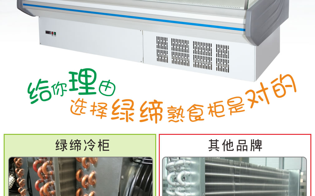 ① 風(fēng)扇或空調(diào)出風(fēng)口不能正對(duì)敞口式冷柜吹風(fēng);
