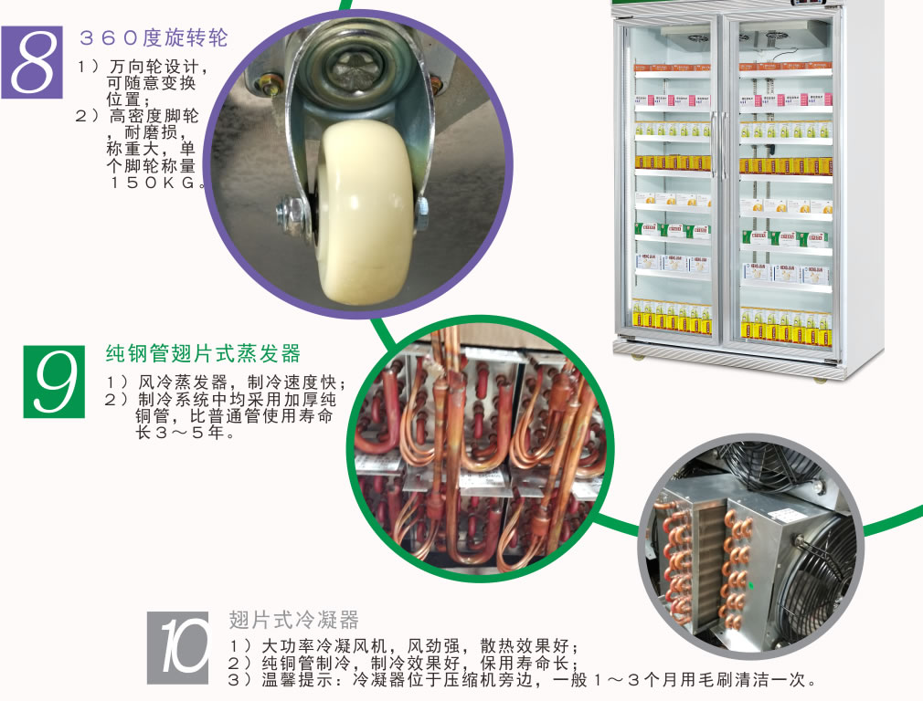 ② 冷柜禁止放在陽光直射的地方,否則因長(zhǎng)期達(dá)不到停機(jī)溫度,影響冷柜壽命;