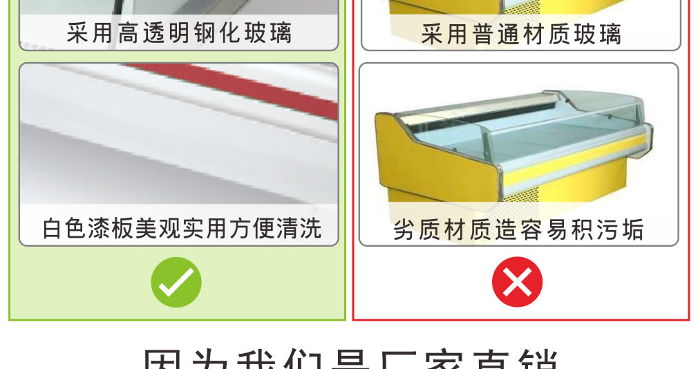① 風(fēng)扇或空調(diào)出風(fēng)口不能正對(duì)敞口式冷柜吹風(fēng);