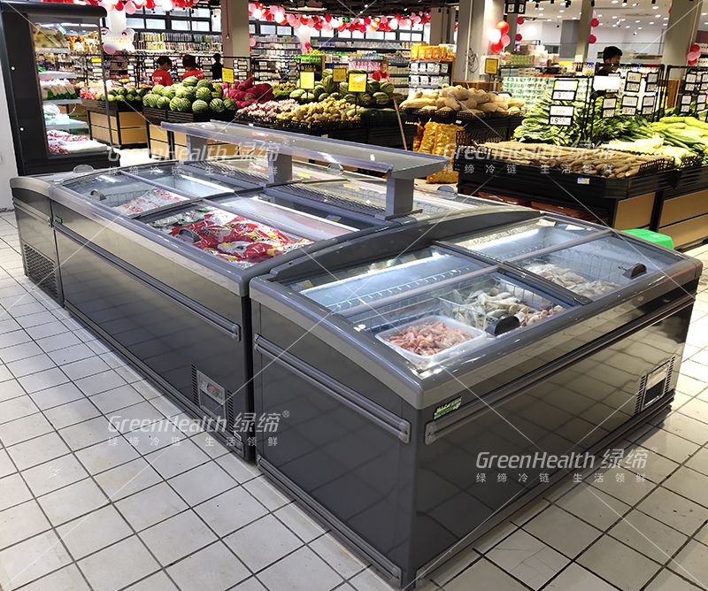 超市組合島柜是款節(jié)能環(huán)保型超市冷凍,冷藏陳列設(shè)備,組合島柜與風(fēng)幕柜陳列柜相比具有如下優(yōu)勢: