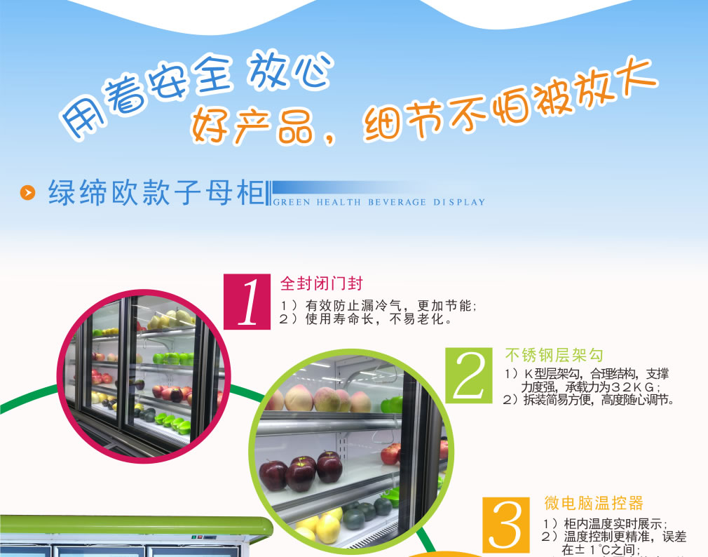 產(chǎn)品銷售有便利店冷柜系列、超市冷柜系列、廚房 冷柜系列、面包蛋糕冷柜系列、冷庫系列等。
