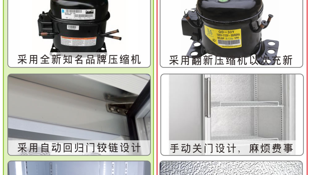 ③ 冷柜內(nèi)外溫差較大時,遇空氣溫度較大的天氣時玻璃門上有水霧凝結(jié),將溫度調(diào)整后即可。