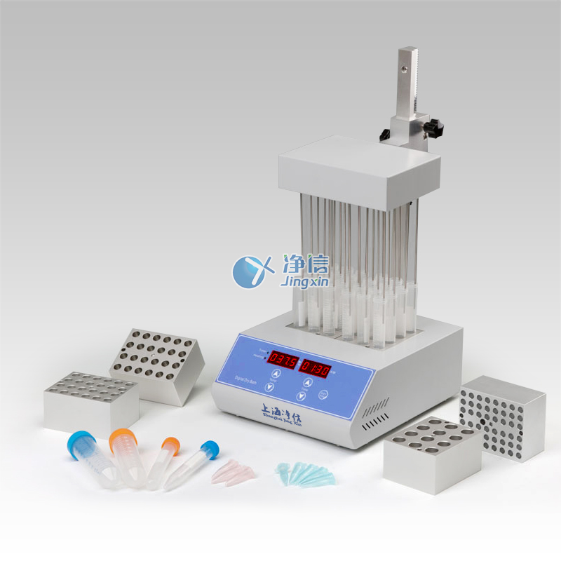 JXDC-10氮?dú)獯祾邇x采用微電腦和PID模糊控制技術(shù),利用鋁材料做為導(dǎo)熱介質(zhì),以代替?zhèn)鹘y(tǒng)的水浴裝置,具有使用方便、控溫范圍大、精度高等特點(diǎn)。其工作原理是將氮?dú)饣蚩諝膺B續(xù)、可控地吹到加熱樣品表面,并根據(jù)被濃縮溶劑的蒸發(fā)速度和沸點(diǎn),設(shè)定加熱溫度,實(shí)現(xiàn)大量樣品的濃縮。